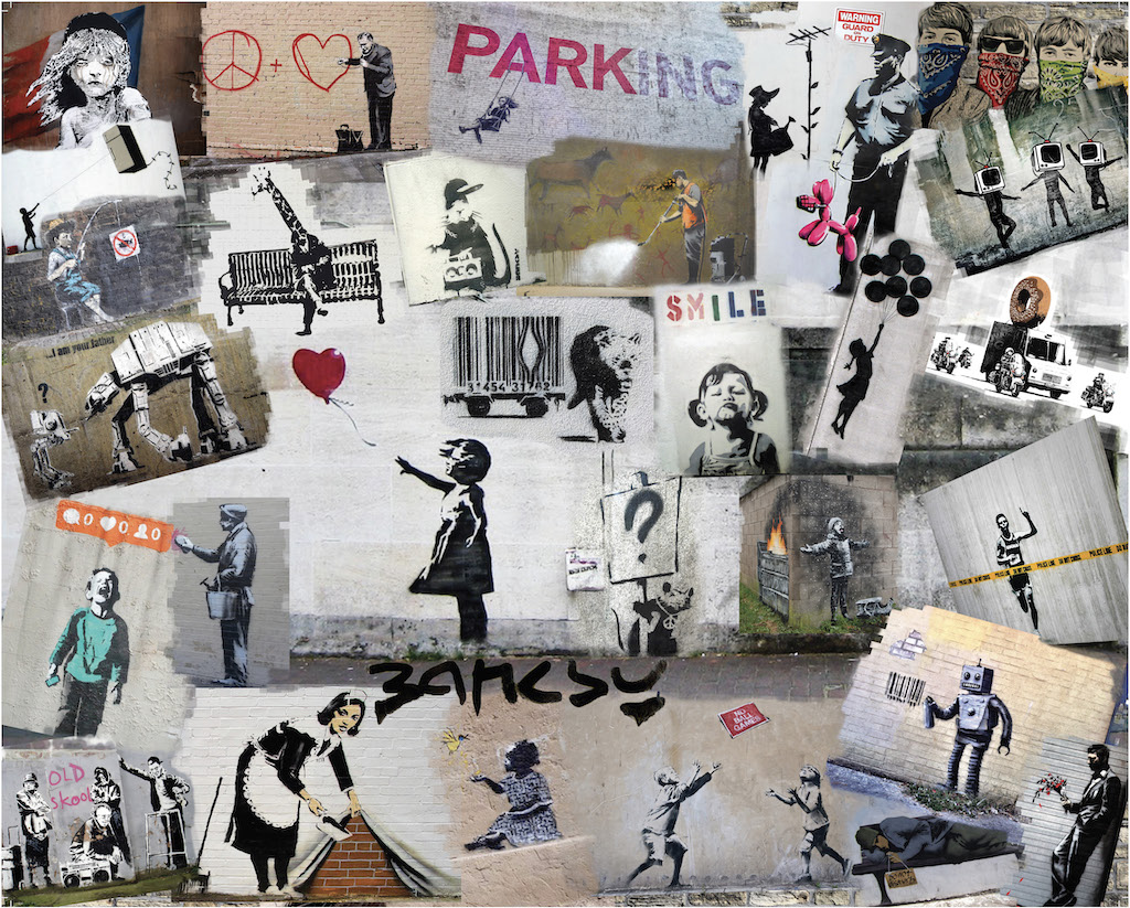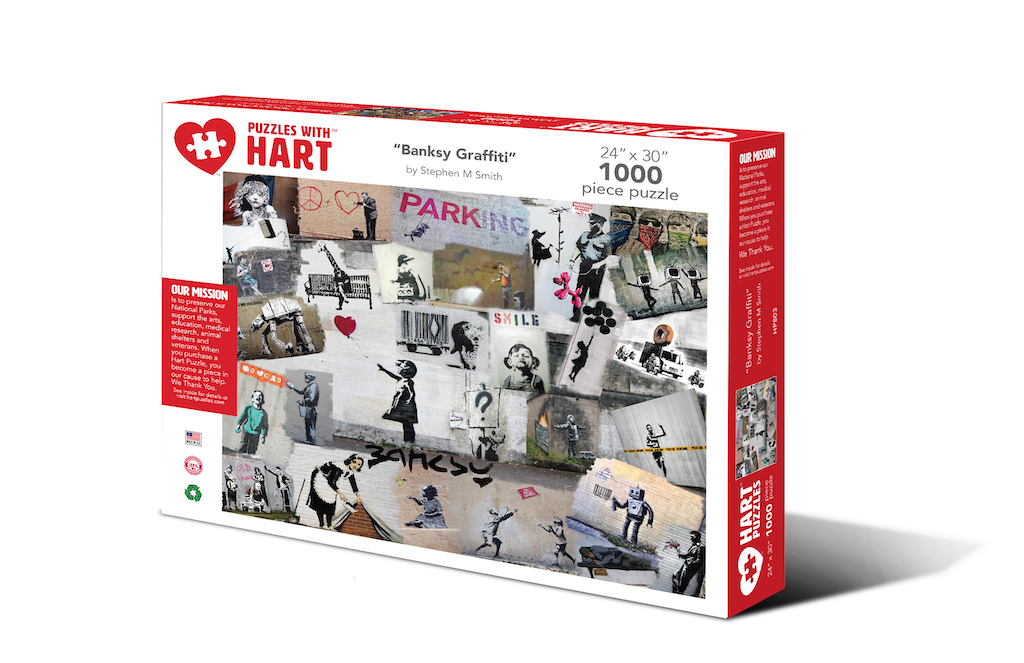 An anonymous England-based street artist who’s combines graffiti with a distinctive stenciling technique, usually based around political or social commentary. Study his technique in this 24”x 30” 1000 piece puzzle. By Stephen M. Smith