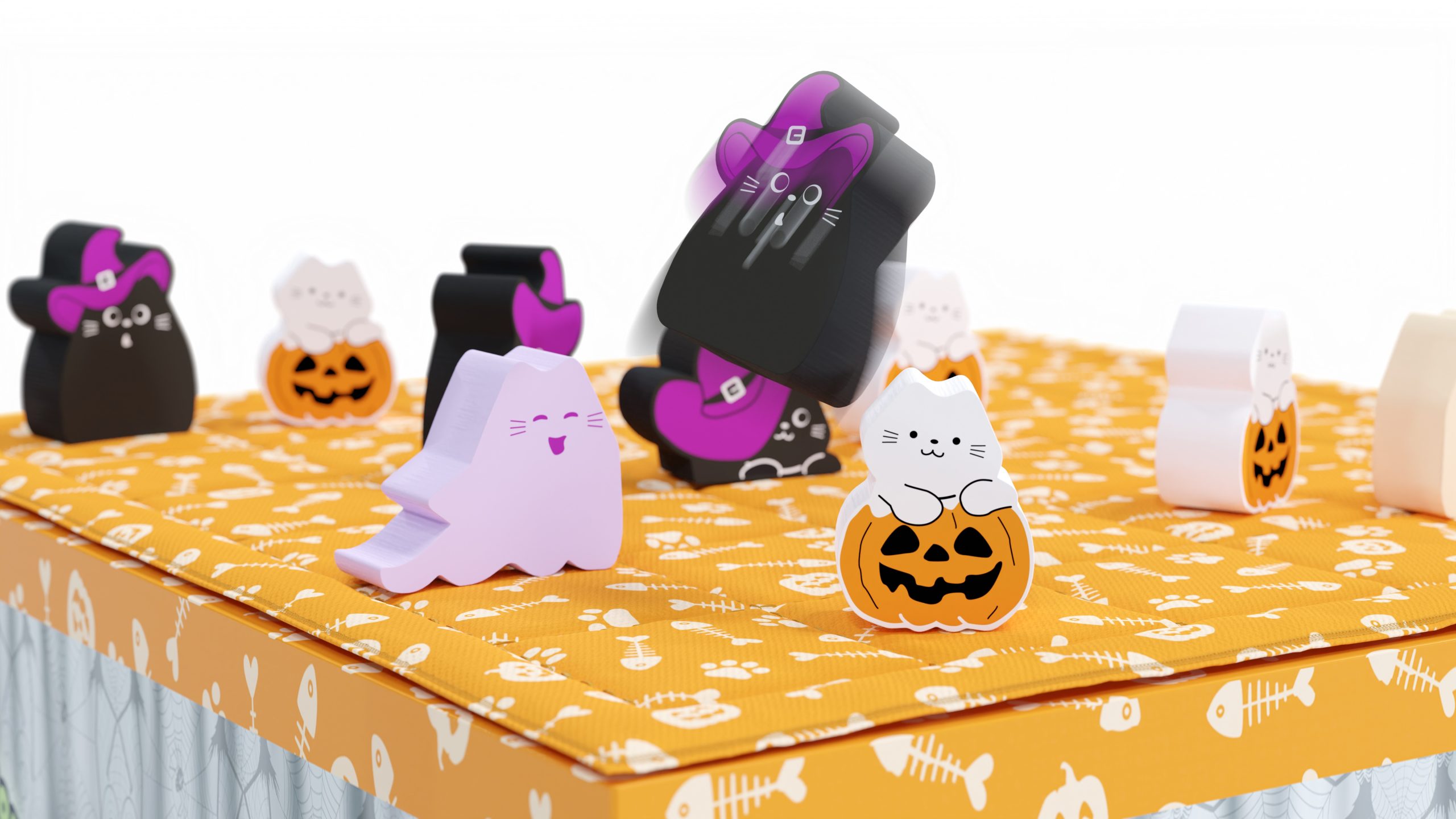 A deceptively cute, deceivingly challenging abstract strategy game for two players. Every time you place a kitten on the bed, it goes “boop.” Which is to say that it pushes every other kitten next to it one space away. Line up 3 kittens in a row to graduate them into cats… and then, get 3 cats in a row to win. But that isn’t easy with both you and your opponent constantly “booping” kittens around. It’s like… herding cats! And now things just got boopier and spoopier with NEW Ghost Cats that float between spaces. And so scary, cats will leap right over each other to get away