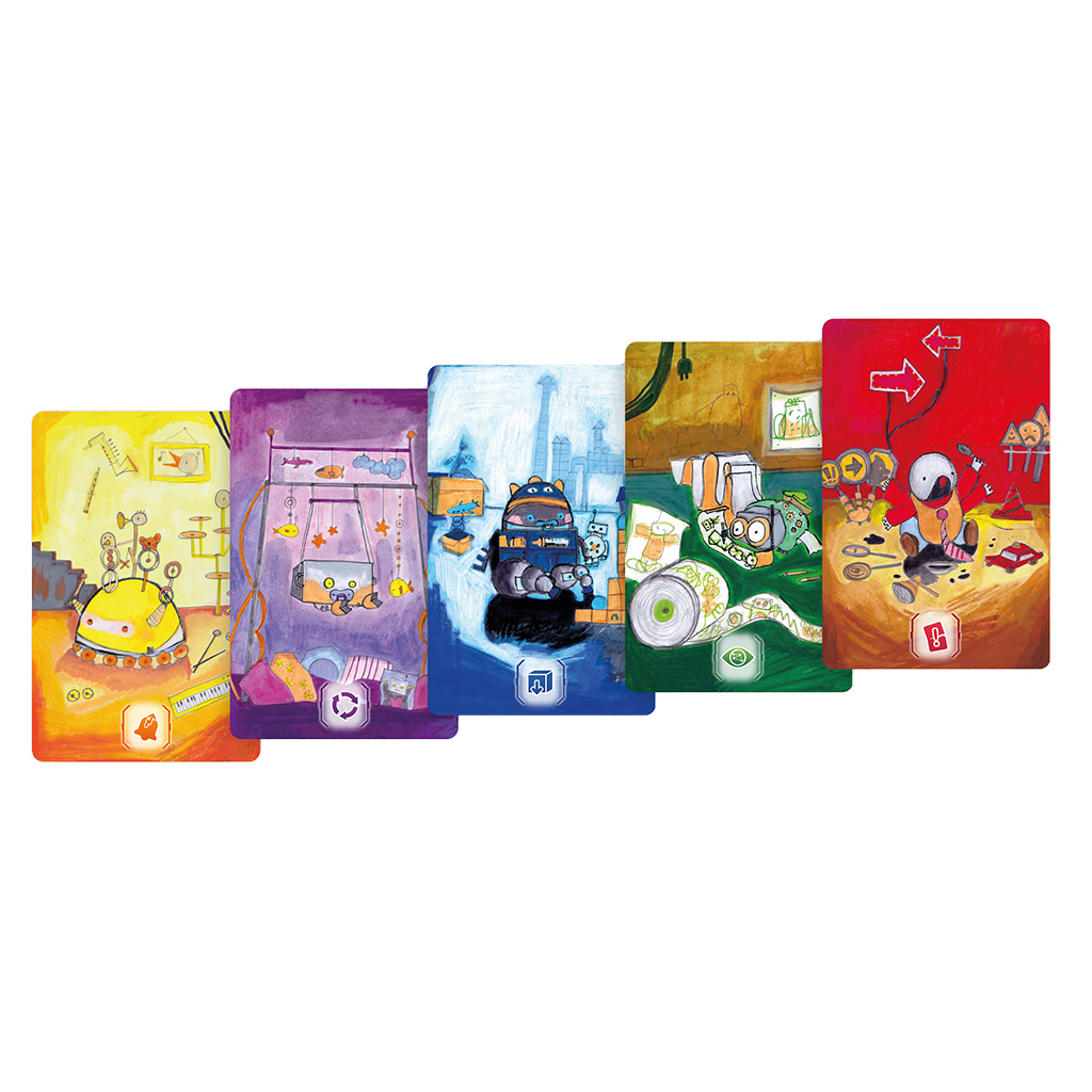 The dream factory has been sabotaged, and everything is on the brink of destruction! Lead the last squad of robot-workers to repair the machines before it’s too late. Use your Robot cards wisely, to complete repairs or to trigger powerful abilities! The machines get harder to repair throughout the game, but you’ll also have opportunities to increase the magnitude of your Robots’ abilities.