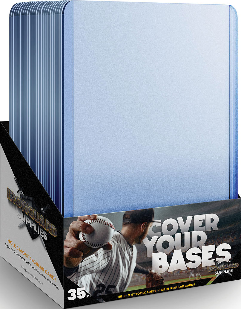 Protect your cardboard gold with these collector-quality toploaders, perfect for trading, storage, and sending cards in to be graded. Designed for regular-thickness 2 1/2″ by 3 1/2″ cards, these 35pt card holders are made of rigid PVC, and measure 3″ by 4″. Bundled in packs of 25, each with a UPC Sticker. An Ironguard Supplies product!