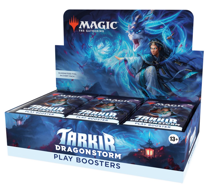 Magic: The Gathering Tarkir: Dragonstorm Play Booster ÷ FIGHT DRAGONS WITH DRAGONSââ¬âReturn to Tarkir for an epic battle between dragons and clans; discover which clan fits your playstyle with distinct three-color gameplay, and add draconic power to your collection ÷ BEST BOOSTERS FOR PLAYING WITH FRIENDSââ¬âPlay Boosters are the best way to discover what Magic: The Gathering has to offer; they’re perfect for building decks, playing Limited games with friends, and are tons of fun to open ÷ A DRAGONââ¬â¢S HOARD OF TARKIR TREASURESââ¬âEach Play Booster contains 1ââ¬â4 cards of rarity Rare or higher, including the possibility of a Special Guest Mythic Rare from Magicââ¬â¢s history featuring new Borderless art ÷ SHINING FOIL IN EVERY PACKââ¬âEvery booster also includes at least 1 shining Traditional Foil card of any rarity; in 20% of packs youââ¬â¢ll add an additional shiny card to your hoard with a Traditional Foil Land ÷ MAY CONTAIN ART CARDSââ¬âFound only in Play Boosters, some packs contain an Art card showcasing a piece of art from the Tarkir: Dragonstorm set and may even feature a foil signature from the artist ÷ CONTENTSââ¬â1 Tarkir: Dragonstorm Play Booster containing 14 MTG cards and 1 Token or Art card Tarkir faces a full-scale draconic assault, pitting clan against clan and all of civilization against a maelstrom of wings, claws, and fire. Choose one of five clans and discover your favorite way to play, then master the fearsome Dragonstorms and summon dragons of your own to rain down fiery devastation!