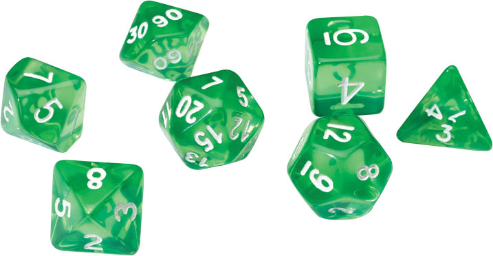 RPG Dice Set (7): Translucent Green Resin