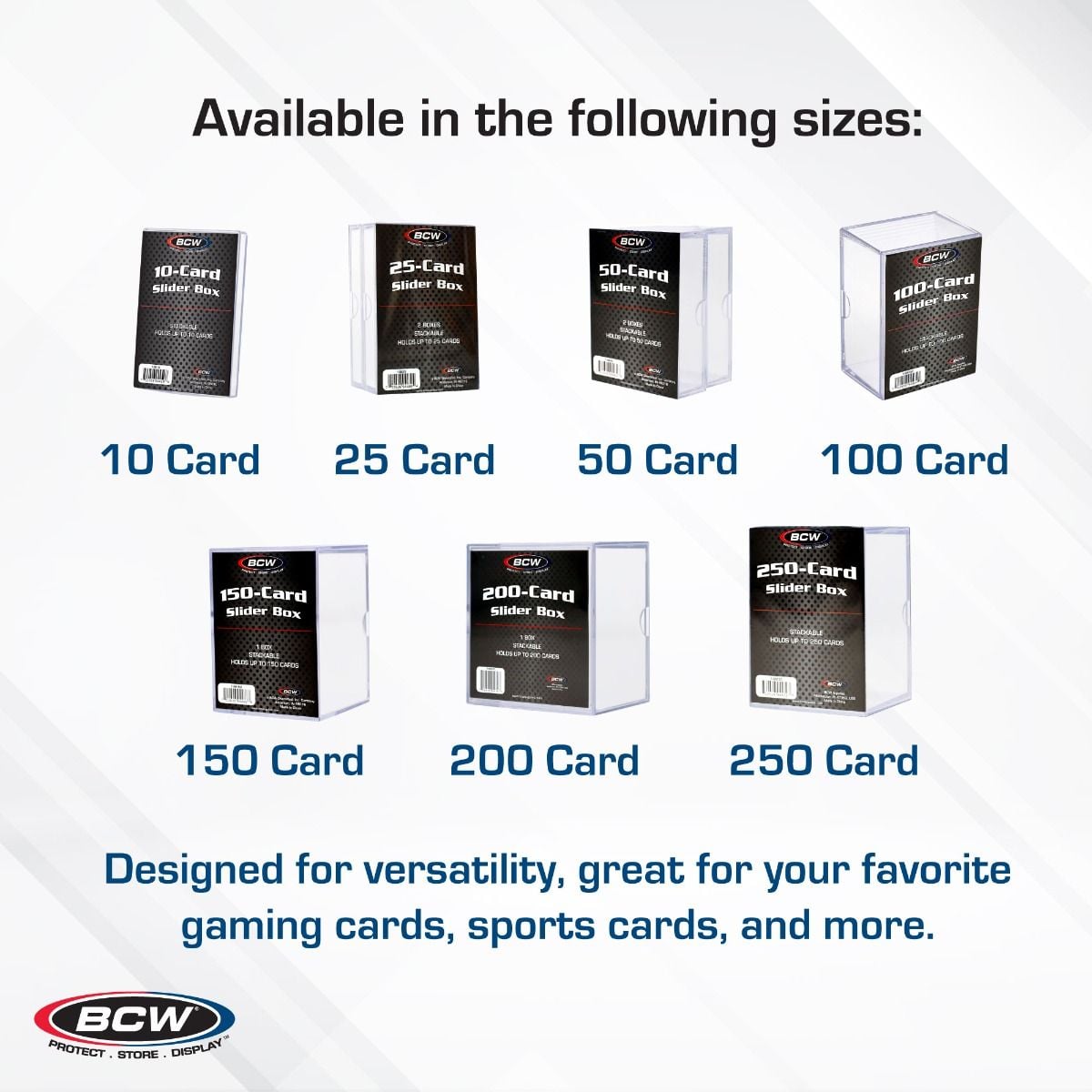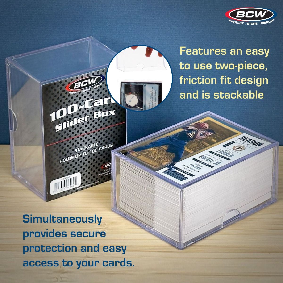 The BCW 2-Piece Slider Box is made of crystal clear, high impact polystyrene and features a friction fit