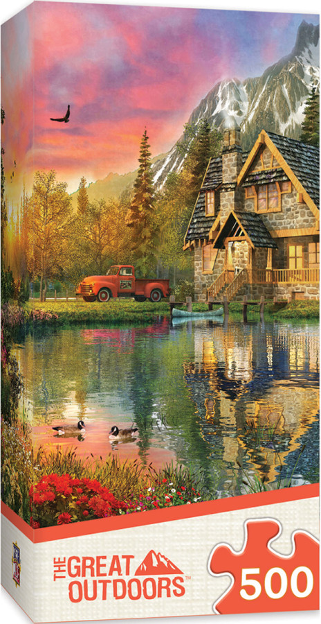 These MasterPieces 14″ x 19″ 500PC Panoramic Great Outdoors Value Puzzles feature iconic camping images that are sure to make you fall in love with the great outdoors! The Great Outdoors space saver assortment features beautiful cabins and vivid outdoor scenes. This puzzle features a secluded cabin in the forest at sunset. The special space saver assortment takes up half the size of a normal puzzle, while providing you with hours of puzzling fun, along with beautiful cabins, lakes, and other outdoor scenes to cherish. To reduce their impact on our environment, the chipboard used in these puzzles is made of recycled material.