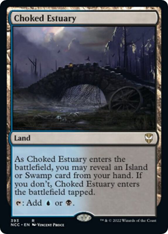 As Choked Estuary enters the battlefield, you may reveal an Island or Swamp card from your hand. If you don’t, Choked Estuary enters the battlefield tapped.