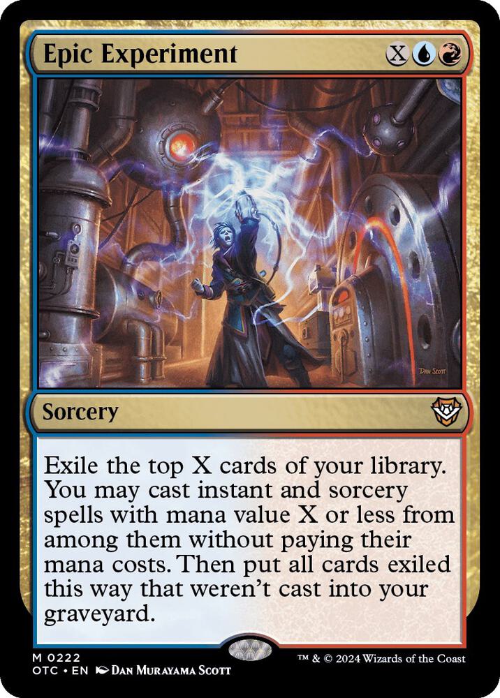 Exile the top X cards of your library. For each instant and sorcery with converted mana cost X or less among them, you may cast that card without paying its mana cost. Then put all cards exiled this way that weren’t cast into your graveyard.