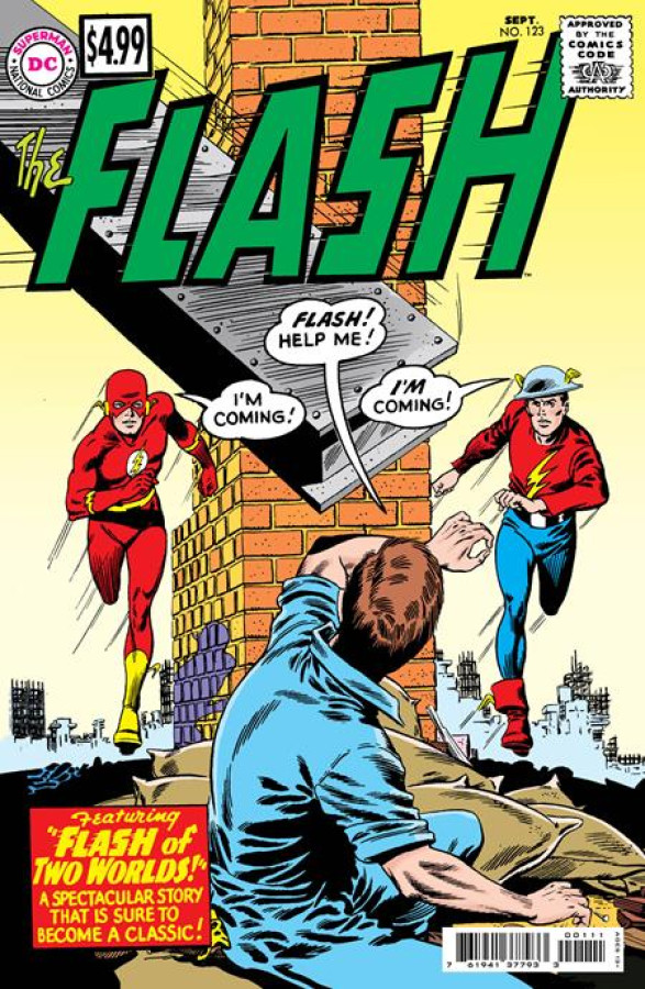 The Flash meets the other Flash in this historic re-creation of Flash of Two Worlds! When Barry Allen’s vibrational powers tear a hole between realities, he inadvertently winds up on Earth-Two–home to speedster Jay Garrick. But before Barry can go home, he’ll have to help Jay contend with a trio of terrors in the form of the Thinker, the Fiddler, and the Shade! This faithful facsimile includes the original story and ads from the 1961 printing.
