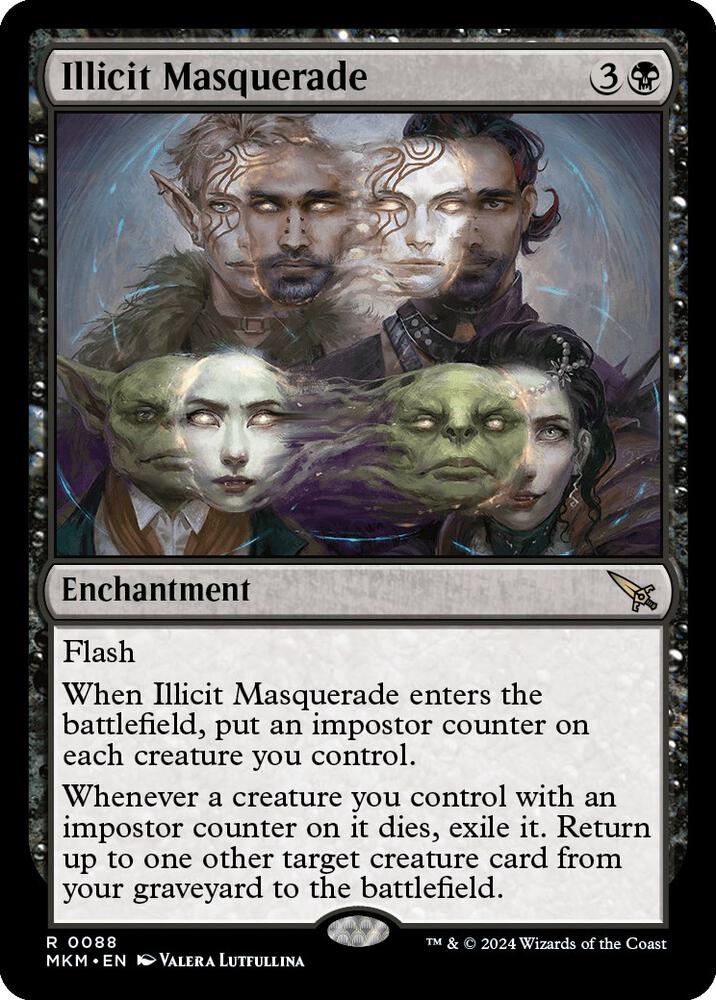 When Illicit Masquerade enters the battlefield, put an imposter counter on each creature you control.