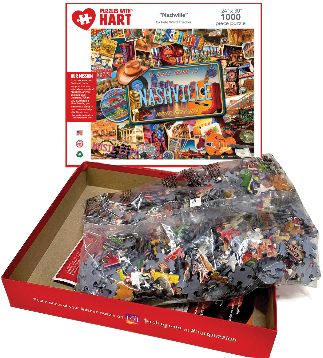 Music City is home to the famous Grand Ole Opry, Ryman Auditorium, Country Music Hall of Fame, Opryland, Broadway and Vanderbilt University. Broadway has all the honky-tonks with the greatest prforming musicians in the USA. Name a song of any style and they will play it for you; just put some money in the hat for the band. You may not know these musicians now but they will be the stars of tomorrow. Now famous for bachelorette parties and the best date you can have with your bride. Many stars were discovered playing in places such as The Bluebird Cafe during Open Mic like Garth Brooks. Explore it all with this 24″x 30″ 1000 piece puzzle. By Kate Ward Thacker
