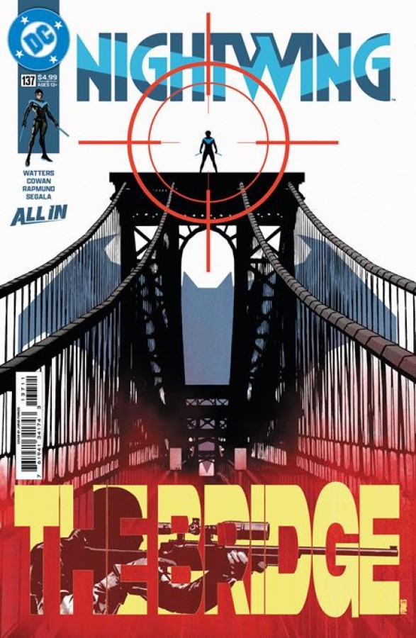 A BRIDGE TOO FAR FOR NIGHTWING AND BATMAN?! Haunted by a deadly highway collision, Nightwing restlessly hunts for clues in the ghost stories of Bludhaven. When a deadly standoff besieges Bludhaven Bridge, Dick Grayson might not be in the best state of mind to tackle it. Luckily, the World’s Greatest Detective has come calling…