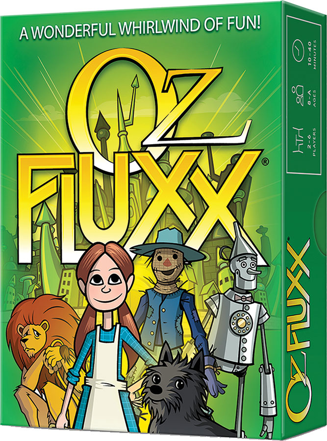 Does life seem drab and humdrum? Let the cyclone of the ever-changing card game, Fluxx, whisk you away to a magical world of fun! Mingle with Munchkins, make new friends, and follow the Yellow Brick Road to see the Wizard, but keep a bucket of water handy: you never know when you might need to melt a Wicked Witch. Next stop… the land of Oz!