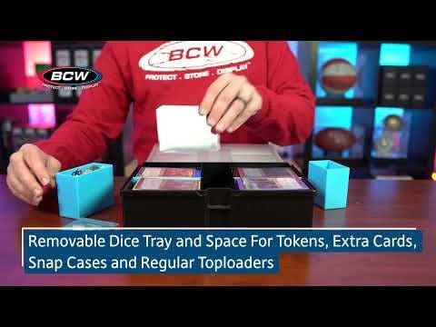 • Removable dice tray and space for tokens, extra cards, snap cases, and regular toploaders.