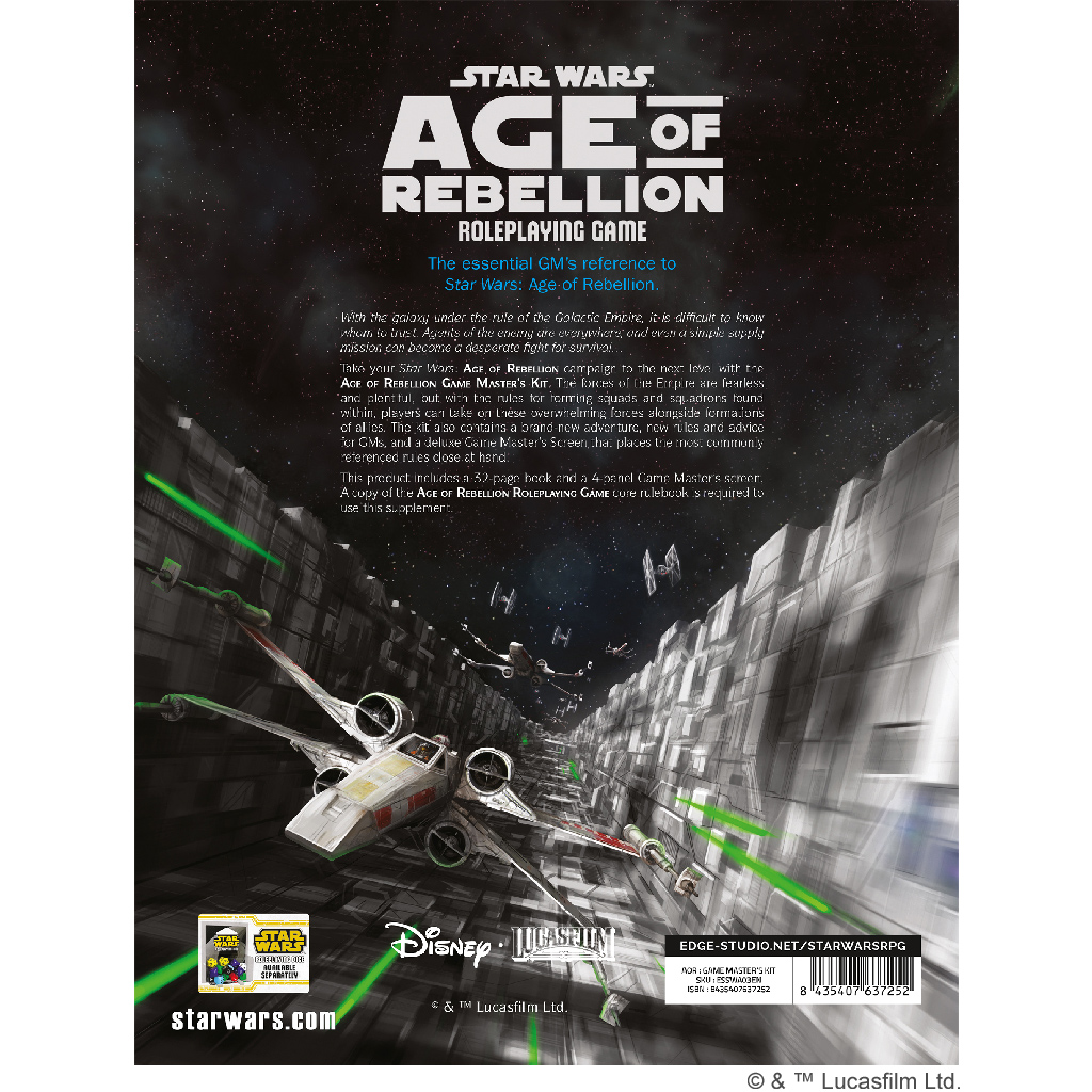 Keep your Star Wars roleplaying campaign focused on the action with the Star Wars®: Age of Rebellion™ Game Master’s Kit. The GM Kit includes a GM screen which will keep all the information you’ll need as Game Master at your fingertips during your Age of Rebellion sessions. You’ll also find new