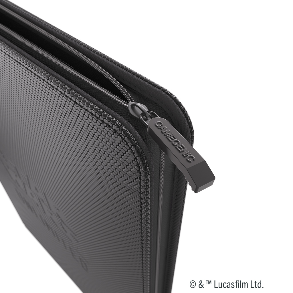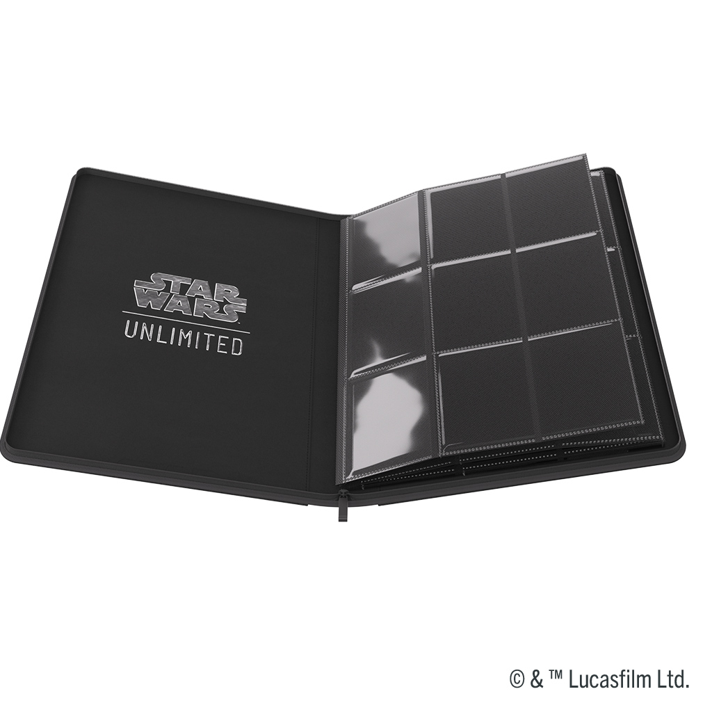 The gaming experience continues with set 4 and a new product! The officially licensed Star Wars™: Unlimited Zip-Up Album is a great way to collect and organize your valuable Star Wars: Unlimited cards. The album is covered with a premium Hexafyber surface and has an elegant hot-stamped Star Wars: Unlimited logo. The inside of the Zip-Up Album is covered with a soft microfiber lining and shows a silver-colored foiled logo. A reinforced, rigid cover adds protection to keep card collections safe. The album contains 20 side-loading pages with 18 side-loading pockets each for a total capacity of 360 double-sleeved cards. A durable zipper closes this album from all sides.PREMIUM CARD STORAGE: The Star Wars: Unlimited Zip-Up Album holds up to 360 double-sleeved cards, making it perfect for organizing your valuable Star Wars: Unlimited collection.DURABLE & SECURE DESIGN: Features a rigid cover to prevent warping and a durable zipper closure to protect cards from dust and damage, ensuring long-lasting protection.HIGH-QUALITY MATERIALS: Crafted with a premium Hexafyber surface and soft microfiber inner lining, this album combines style with functionality, offering an elegant hot-stamped logo and silver-foiled interior logo.18 SIDE-LOADING POCKETS PER PAGE: Includes 20 pages with 18 side-loading pockets each, compatible with standard and Japanese-sized cards for versatile storage.