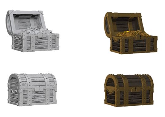 This WizKids Deep Cuts Unpainted Miniatures: Chests comes with highly-detailed figures, pre-primed with Acrylicos Vallejo primer and includes deep cuts for easier hand painting. The packaging of each different set will display the minis in a visible format