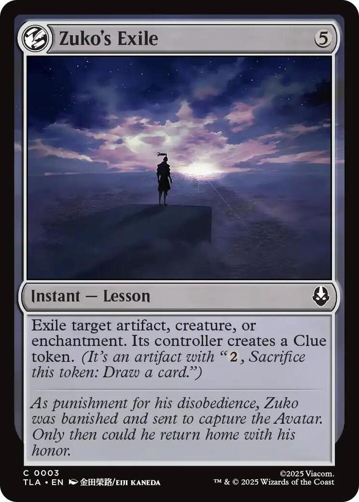 Flavor: As punishment for his disobedience, Zuko was banished and sent to capture the Avatar. Only then could he return home with his honor.